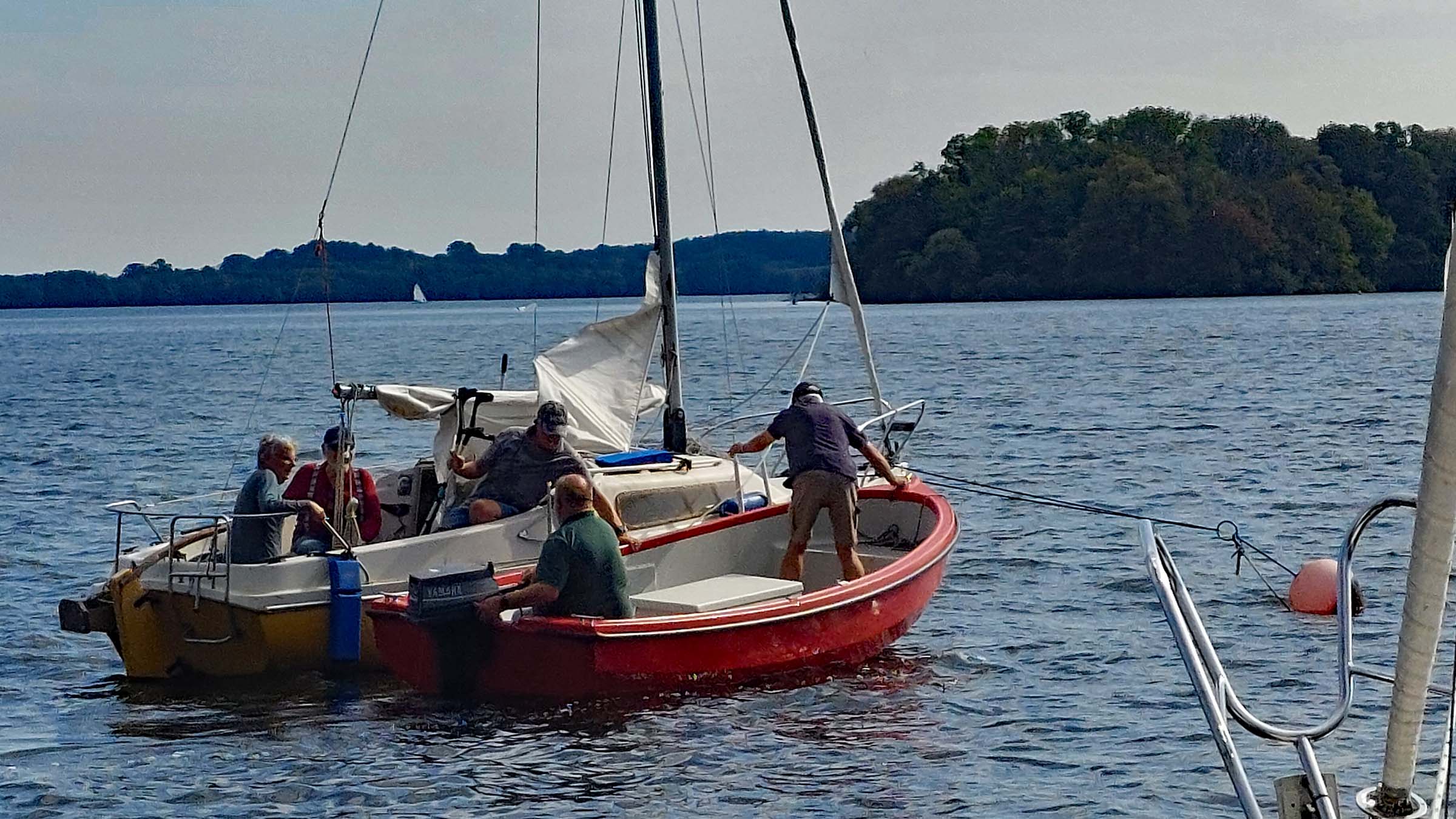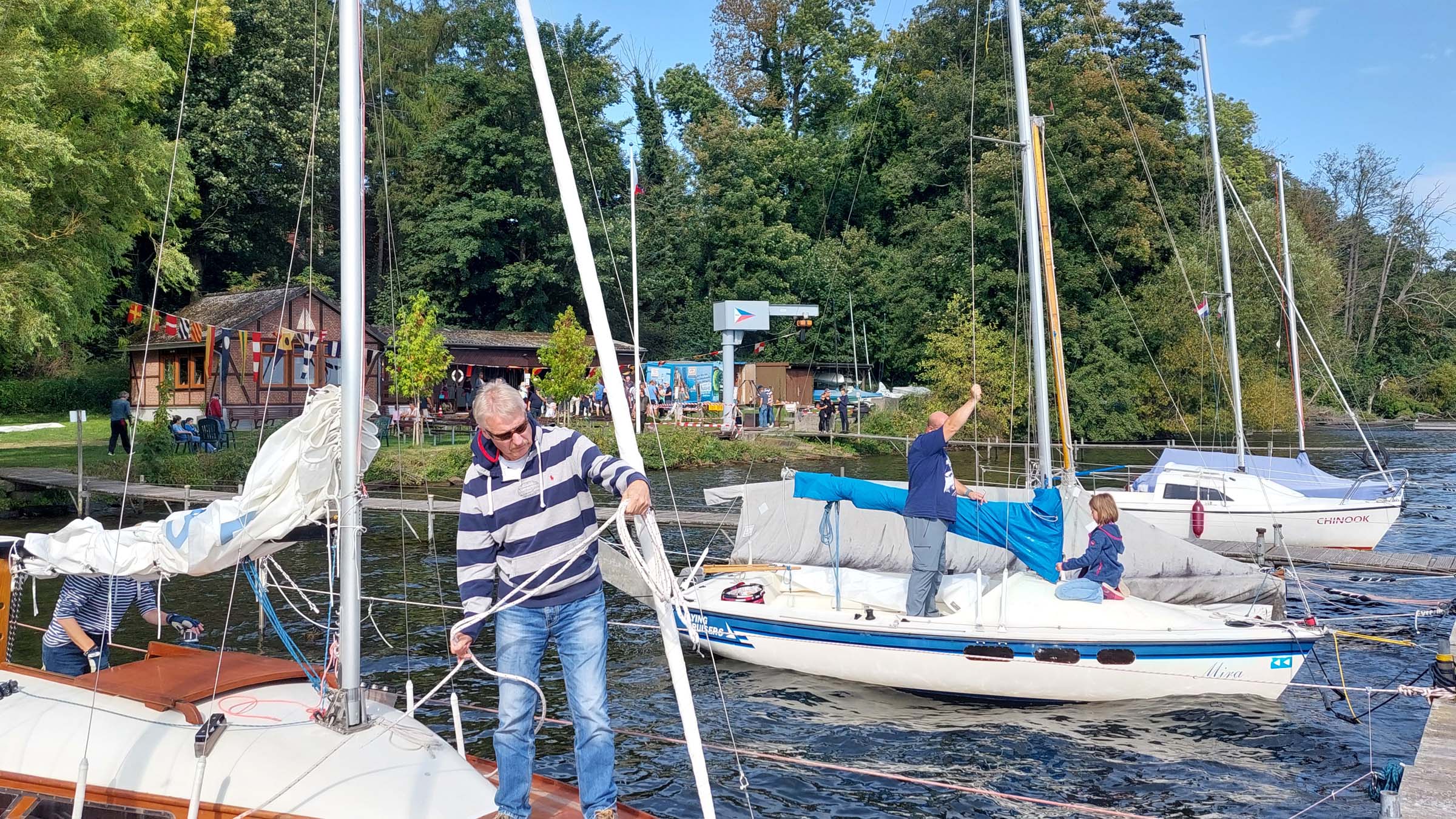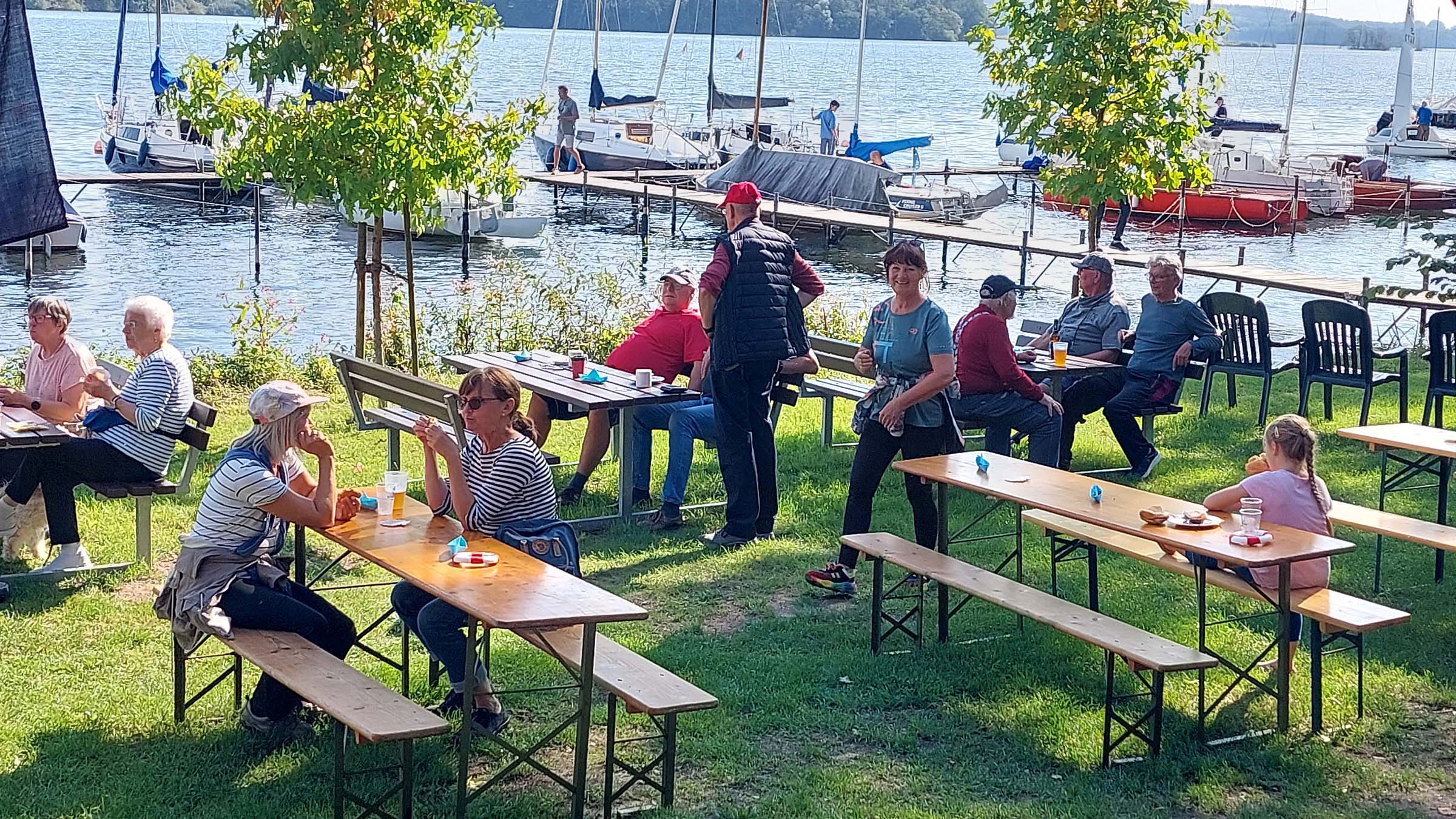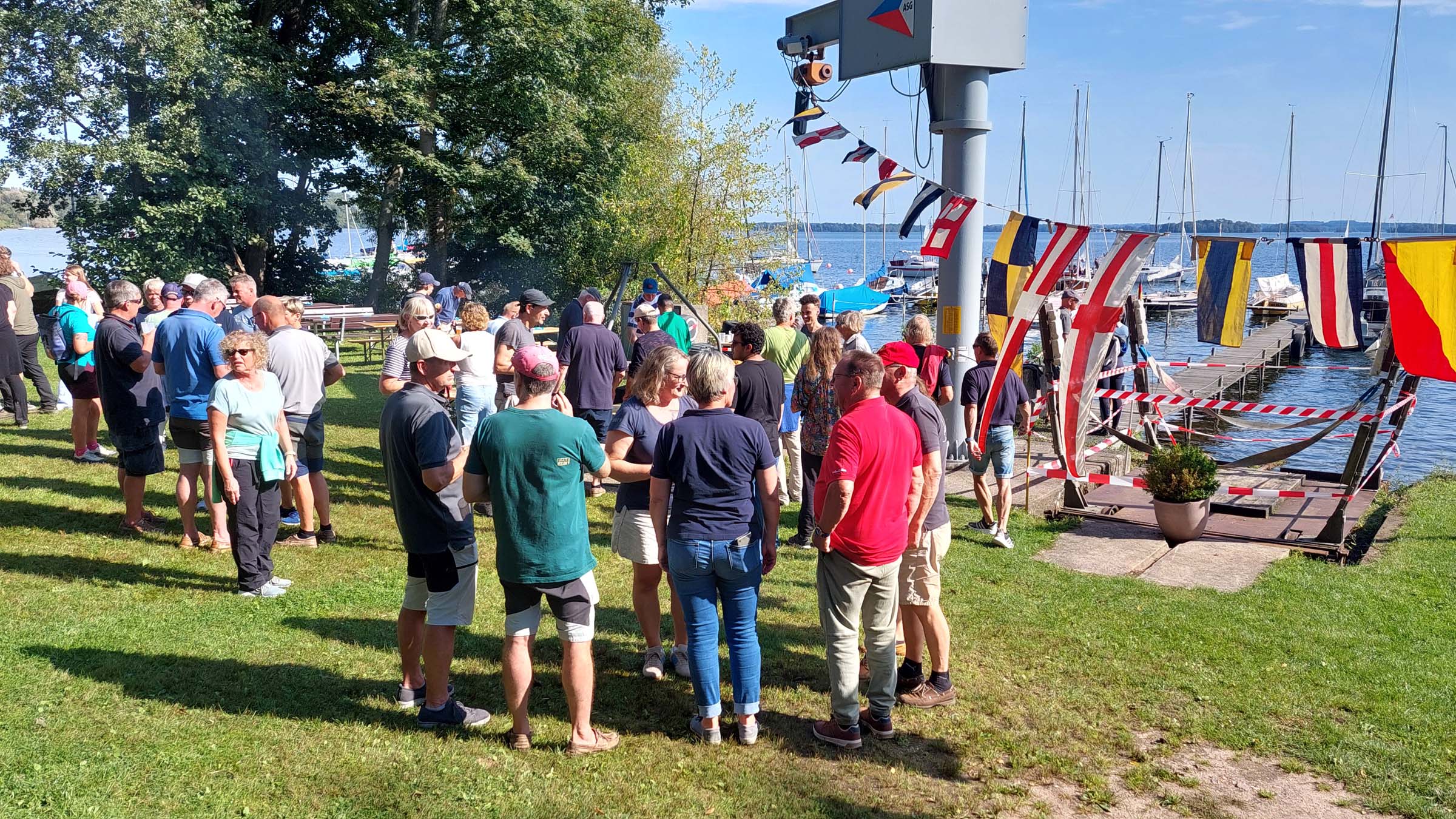 Um 13:00 Uhr trafen sich die SeglerInnen der Vereine vom Großen Plöner Sees, um  nach Ascheberg zu eegeln. Unser 2. Vorsitzender wartete in unserem Motorboot light blue und begrüßte sie.