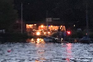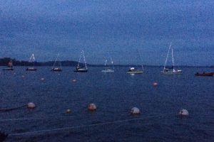 Als der Mond über der Prinzeninsel aufging, endete der Lampionkorso. Als Alle wieder unter dem Dach des Takelbodens saßen, begann dann der Regen, der nun der guten Stimmung nicht mehr schaden konnte.
