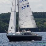 Die ebenfalls als “Geschwader-Regatta” gewertete Rückfahrt führte von Godau zum Messhäuschen der MUS, durch den Mittelgrund und um Tonnen in der Plöner Bucht. Sie verlief feucht-fröhlich, jedoch nicht im vermuteten Rahmen, sondern quer durch einen massiven Regenguss der teilweise nur Sichtweiten unter 100 Metern erlaubte. Trotz dessen kamen fast alle Boote wieder wohlbehalten ins Ziel am PSV zurück – nur ein 15-er erlitt Schwertbruch und benötigte die Hilfe eines Begleitbootes.